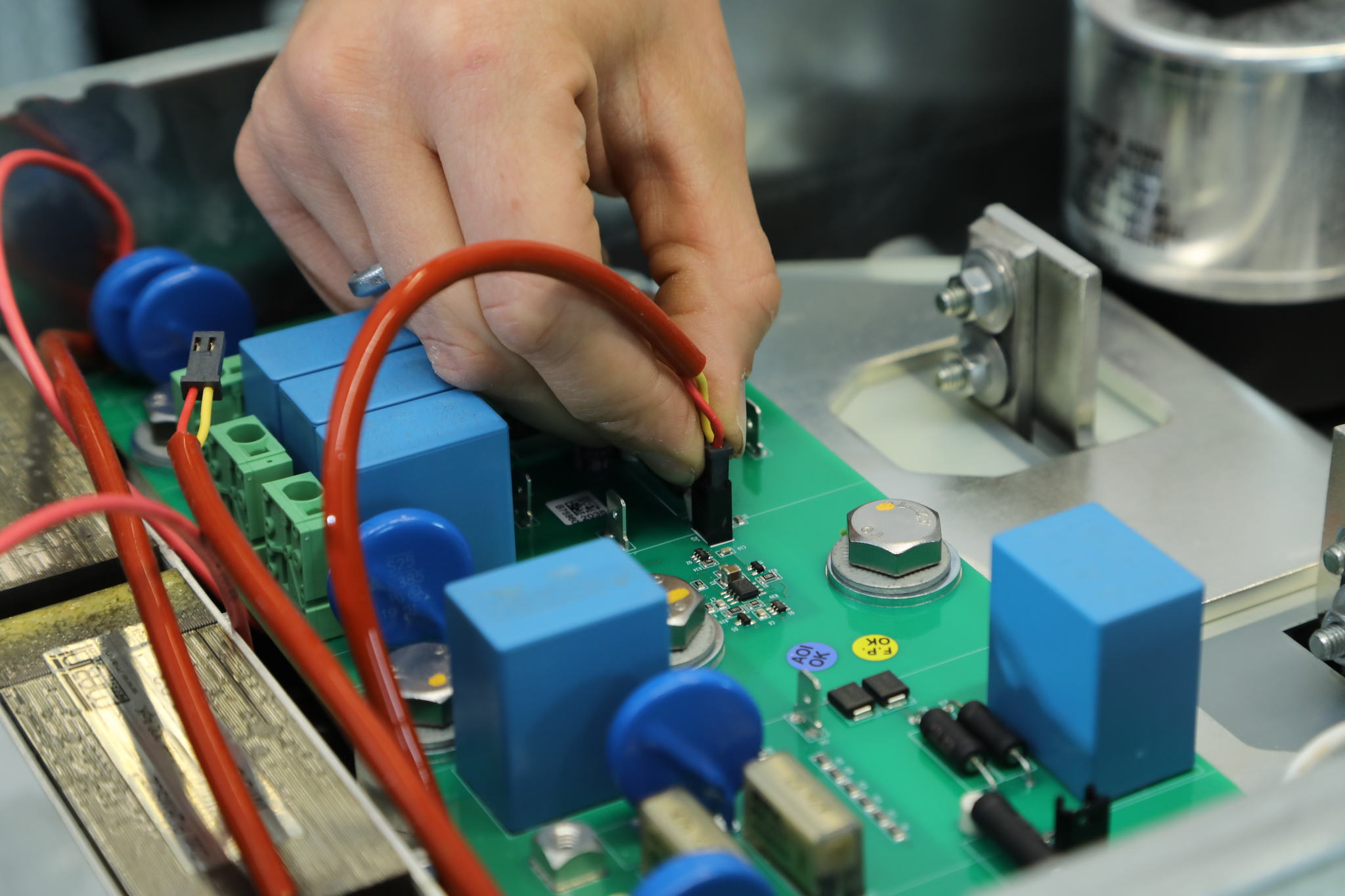 The manual assembly of electronic boards is handled by experienced and highly trained staff spread over a number of assembly lines.